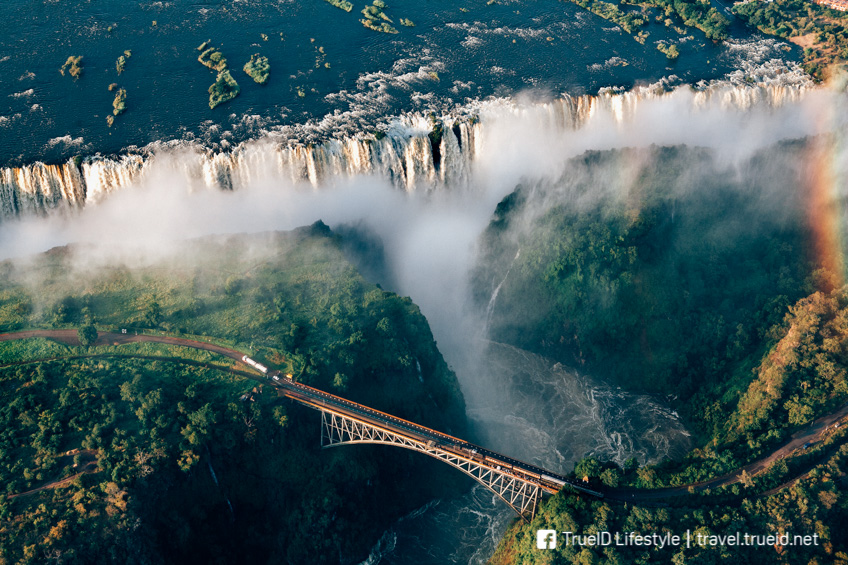 Victoria Falls หรือ Mosi-oa-Tunya (โมซิ-โอวา-ทุนยา แปลว่า ควันที่ส่งเสียงร้องคำราม) อยู่บริเวณรอยต่อของประเทศแซมเบีย และซิมบับเว มีความกว้างกว่า 1.7 กิโลเมตร สูง 108 เมตร