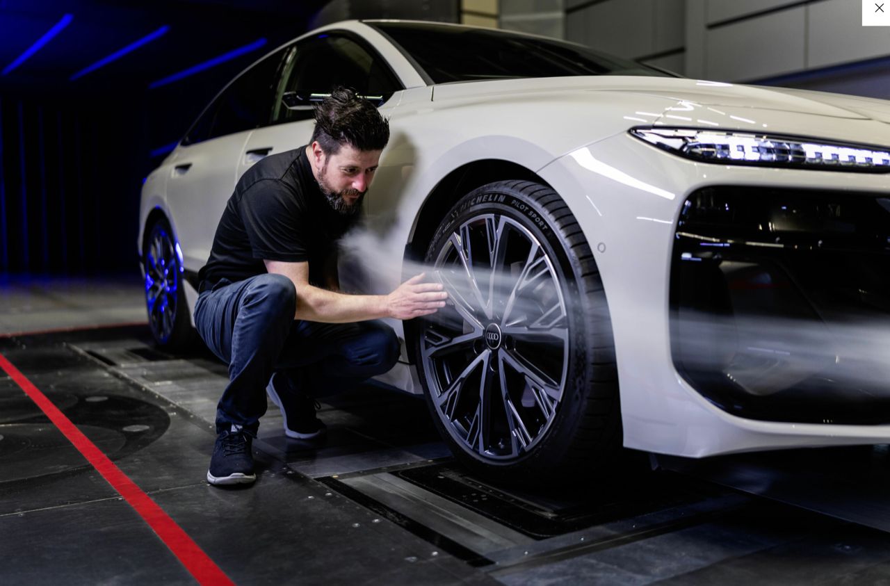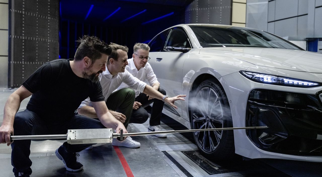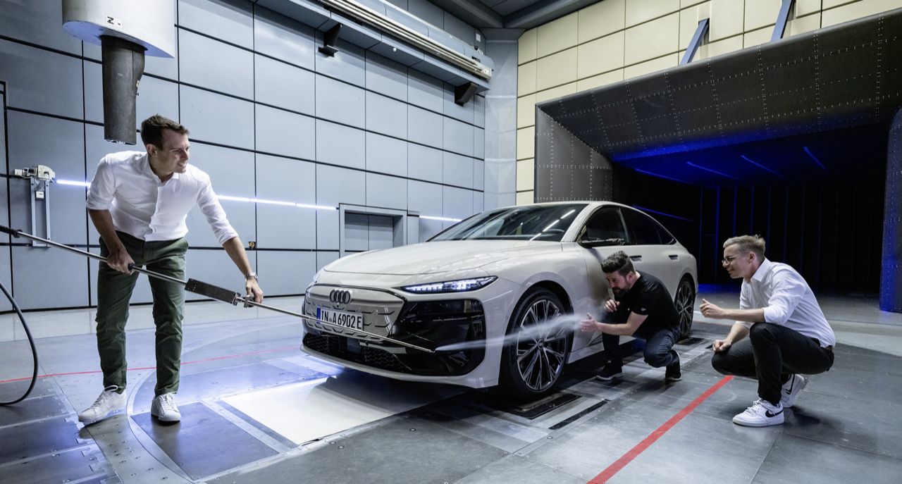 นักออกแบบสามารถประเมินระบบอากาศพลศาสตร์เบื้องต้นด้วยการทดสอบซ้ำแล้วซ้ำอีกในอุโมงค์ลม ในกระบวนการทดสอบแบบวนซ้ำ โดยใช้การจำลองรถต้นแบบเสมือนจริง รวมถึงการใช้แบบจำลองทางกายภาพในอุโมงค์ลม เพื่อปรับปรุงรูปทรงพื้นฐานของ A6 e-tron ให้เหมาะสม โดยเฉพาะอย่างยิ่ง สัดส่วนของเสาหน้า การออกแบบกระจกที่เพรียวบาง องศาความลาดเอียงของหลังคา กระจังหน้าแบบปิดทึบ ทั้งสามองค์ประกอบทำให้ระบบอากาศพลศาสตร์ของ A6 e-tron อยู่ในเกณฑ์ที่ดีเยี่ยม!