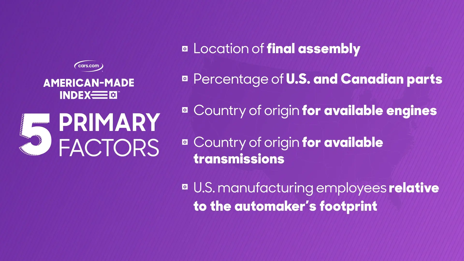 Cars.com มีการคำนวณที่ไม่ได้ดูแค่สถานที่ประกอบรถเท่านั้น แต่พิจารณาจาก 5 ปัจจัยหลัก ได้แก่