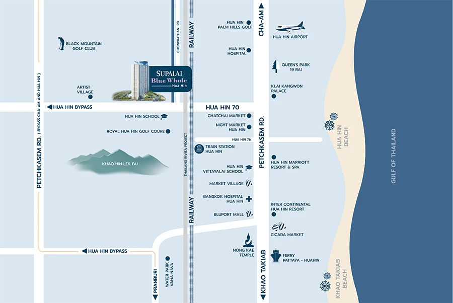 คอนโดแห่งแรกจากศุภาลัย “ศุภาลัย บลูเวล หัวหิน” บนทำเลใจกลางหัวหิน สุด Exclusive ที่จะสามารถชมวิวได้รอบๆ ทั้งวิวทะเล วิวภูเขา พร้อมรับลมธรรมชาติ และให้ความเป็นส่วนตัวกับทุกการพักผ่อน ที่มาพร้อมกับส่วนกลางจัดเต็มด้วย Lighthouse Park หรือสวนน้ำ สไตล์ Adventure Kids และ สระว่ายน้ำขนาดใหญ่ อีกทั้งคอนโดยังอยู่ใกล้แหล่งสิ่งอำนวยความสะดวกใจกลางหัวหิน