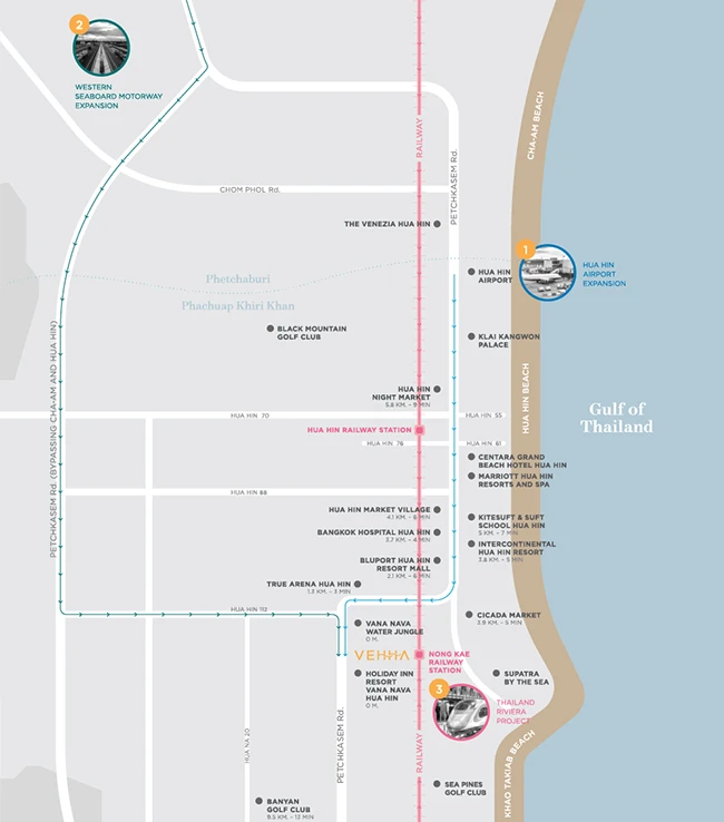คอนโดมิเนียมระดับลักชัวรี่ กับ เวหา หัวหิน ภายใต้คอนเซปต์ “New Lifestyle Seaview Residences” คอนโดตั้งอยู่บนถนนเพชรเกษม ด้านหลังยังมีสวนน้ำ วานา นาวา โดดเด่นด้วยการออกแบบ Single Corridor ทำให้ทุกยูนิตได้รับวิวทะเลแบบเต็มที่ และจัดเต็มไปกับสิ่งอำนวยความสะดวกมากมาย ที่จะทำให้การอยู่อาศัยสมบูรณ์แบบ