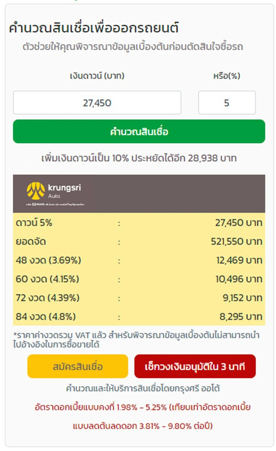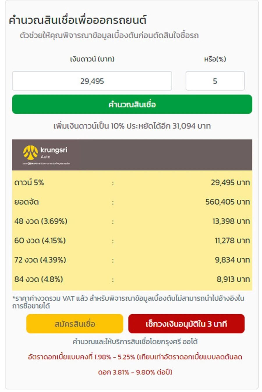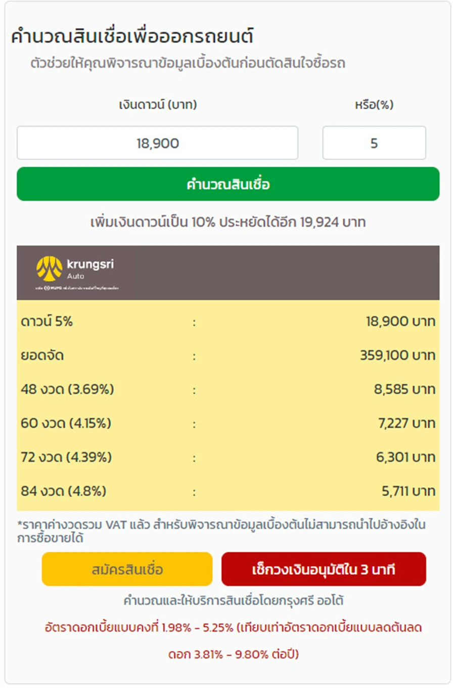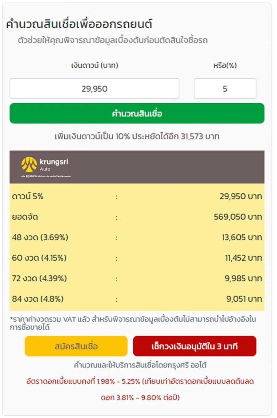 582,000 บาทคำนวณเงินผ่อน โดยกรุงศรี ออโต้