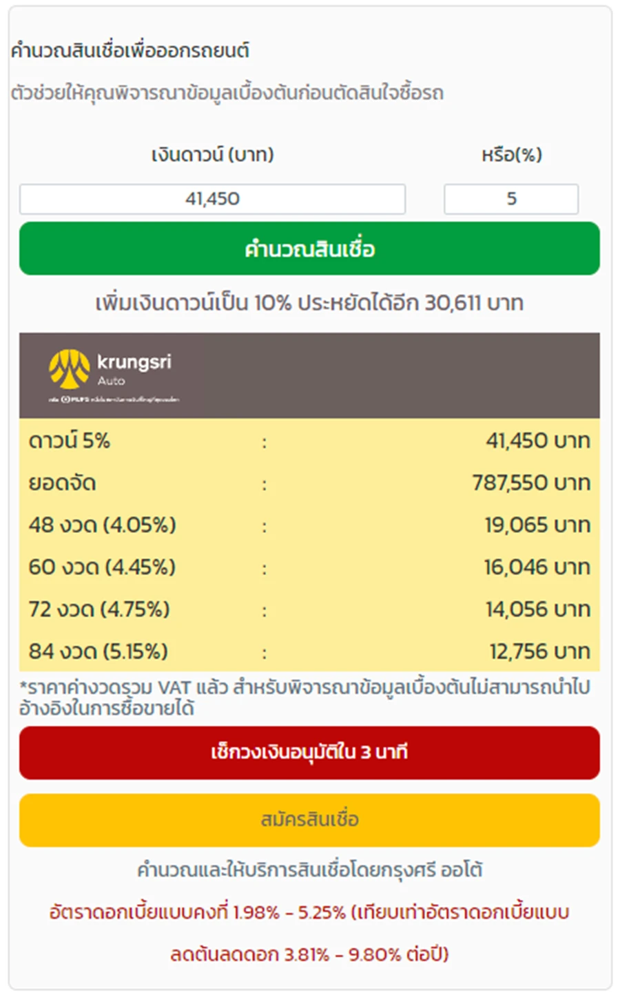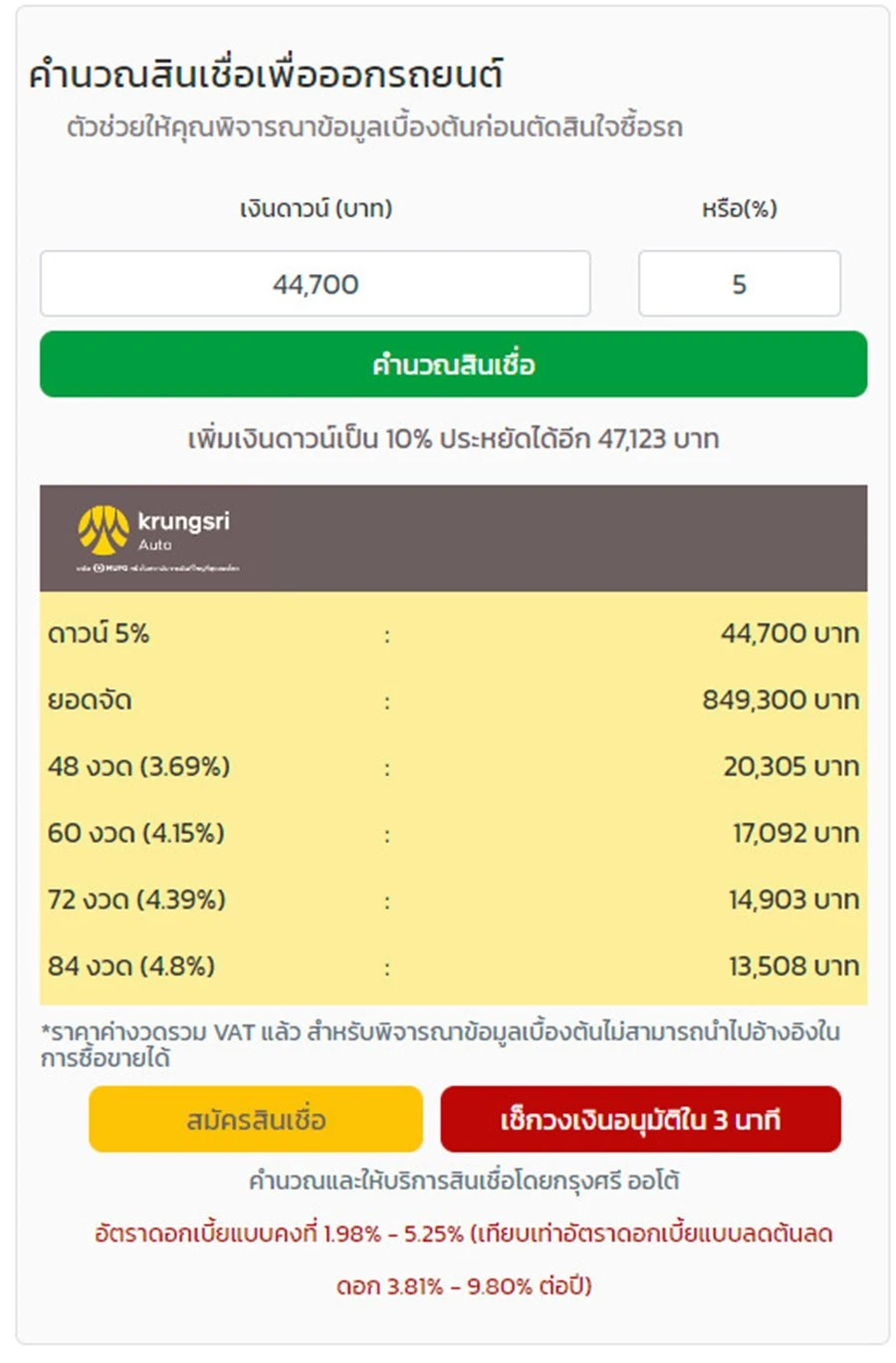 898,000 บาทคำนวณเงินผ่อน โดยกรุงศรี ออโต้