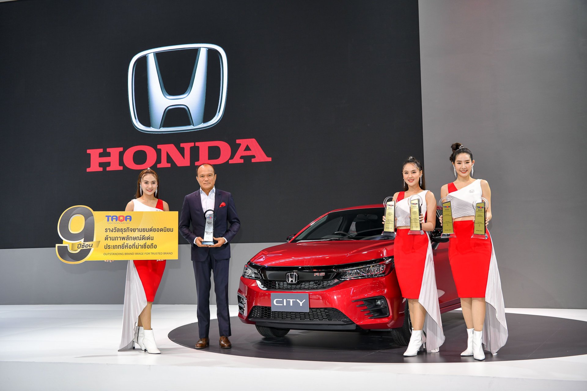 นอกจากความสำเร็จด้านยอดจำหน่าย ในปี 2563 ฮอนด้า ยังได้รับรางวัลธุรกิจยานยนต์ยอดนิยม (TAQA – Thailand Automotive Quality Award) ด้านภาพลักษณ์ดีเด่น ประเภทยี่ห้อที่น่าเชื่อถือ (Outstanding Brand Image for Trusted Brand) ซึ่งได้รับต่อเนื่องเป็นปีที่ 9 นับตั้งแต่ปี พ.ศ. 2555 – พ.ศ. 2563 พร้อมด้วยรางวัลธุรกิจยานยนต์ยอดนิยม ด้านคุณภาพแรกใช้ผลิตภัณฑ์ ในรถยนต์ 4 รุ่น ได้แก่ ฮอนด้า ซิตี้ เทอร์โบ ฮอนด้า ซีวิค ฮอนด้า ซีอาร์-วี ใหม่ และฮอนด้า บีอาร์-วี