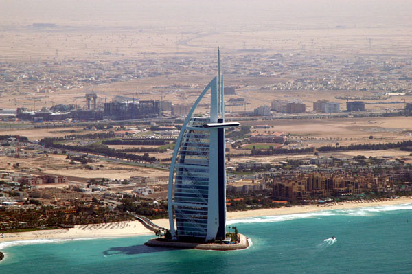 โรงแรม นี้จัดว่าขึ้นชื่อระดับโลก เพราะก่อสร้างและเปิดดำเนินการเรียบร้อยแล้ว ถือเป็นโรงแรมระดับ 7 ดาวแห่งแรกของโลก ความสูงของโรงแรมอยู่ที่ 321 เมตร ตัวโรงแรมนั้นถูกออกแบบมาให้เป็นเหมือนใบพัดเรือ บนพื้นที่ที่เป็นเหมือนเกาะอยู่ห่างจากหาด Jumeirah ประมาณ 280 เมตรความ สุดยอดของโรงแรมนี้อีกอย่างหนึ่งคือการเป็นเอเทรียมที่สูงที่สุดในโลก คือสูงถึง 180 เมตร มีห้องพักกว่า 200 ห้องที่ไม่ซ้ำกันเลย ด้วยราคาระหว่าง 1,000 ไปจนถึงมากกว่า 28,000 เหรียญสหรัฐต่อคืน ในตัวโรงแรมมีภัตตาคาร 8 แห่ง แต่ละแห่งมีทั้งบาร์และเลาจ์ ฟิตเนส และสิ่งอำนวยความสะดวก